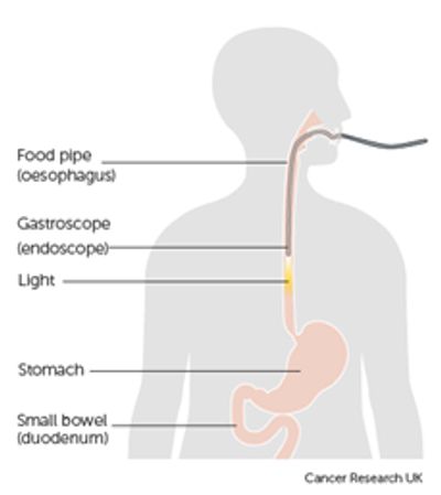 An endoscopy is an exam where a doctor uses a small camera on a long thin flexible tube to look inside the body. For patients with heartburn and related conditions, endoscopy is used to check the throat, oesophagus (food pipe), and the stomach. The camera is passed into the mouth and down the throat, usually while the patient is sedated. Endoscopies are mostly carried out at endoscopy units in hospitals. The patient can usually go home the same day.